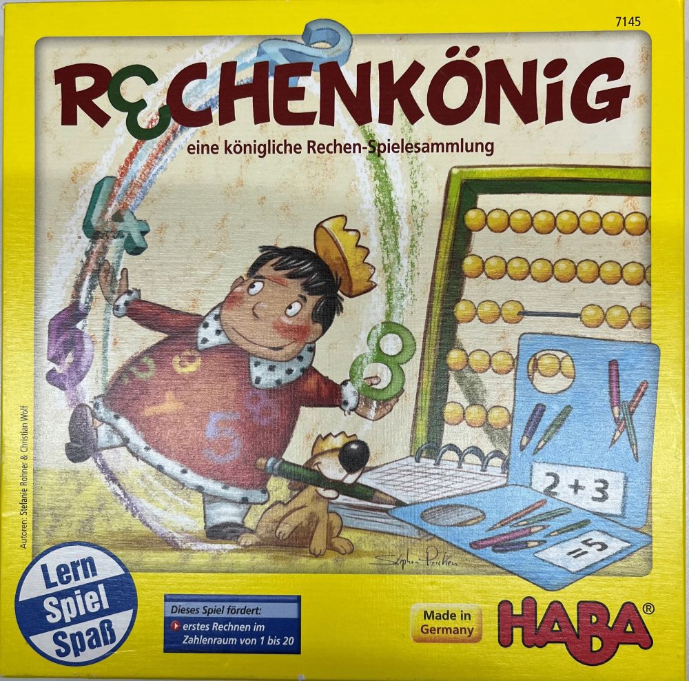 | Art Nr: S 1 Rechenkönig von HABA Mit zahlen kennt sich der schlaue König bestens aus. Passen seine grauen Füsse in die Löcher der Karten, geht die Rechnung auf. So können die Kinder sofort prüfen, ob ihre Lösung stimmt. 7 unterschiedliche Spielideen zum Rechnen im Zahlenraum vin 1 bis 20 sorgen für viel Abwechslung. Für 6.00 VERKAUFT |