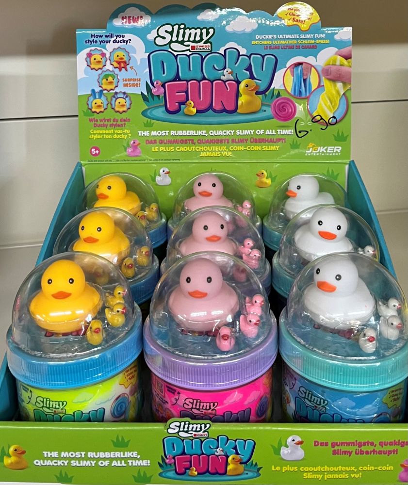 | Art Nr: S 14 Slimy Ducky Fun 3 Farben sortiert - Gelb, Rosa und Blau Jeder Becher enthält: - 250g Gummi Slimy - 1 Gummi-Entchen - 3 kleine Ducky-Anhänger - 1 Mystery Ducky Zubehör Für je 6.90 |