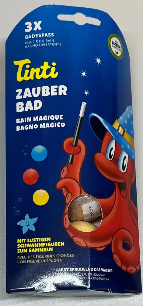 | Art Nr: S 23 Tinti Zauberbad Die bunten Badekugeln färben sprudelnd das Wasser rot, blau oder gelb und zaubern eine lustige Schwammfigur zum Spielen und Sammeln hervor Für drei Anwendungen: 1x Rot, 1x Gelb, 1x Blau Mit Natur- und Lebensmittelfarben Hautverträglichkeit dermatologisch bestätigt Färbt weder Haut noch Wanne Für Kinder ab 3 Jahren